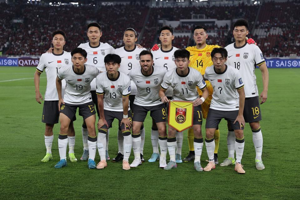 国足首发阵容:颜骏凌;杨希、朱辰杰、刘浩帆、刘洋;王钰栋、徐彬、王上源、谢文能;韦世豪、张玉宁