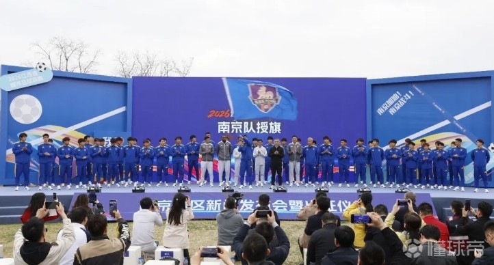 北京时间3月26日,2026“苏超”南京赛区新闻发布会暨出征仪式在金陵STYLE浪漫中心举行。发布会上,南京队球员及教练员集体亮相。2026年“苏超”南京队共有教练员4名、工作人员7名、球员50名。球员来源广泛,从去年年底开始组队,经过两轮筛选和冬训选拔确定,主要包括南京青训、校园足球、驻宁高校、职业俱乐部、宁超联赛等优秀球员,还有部分社会球员加入了南京队。