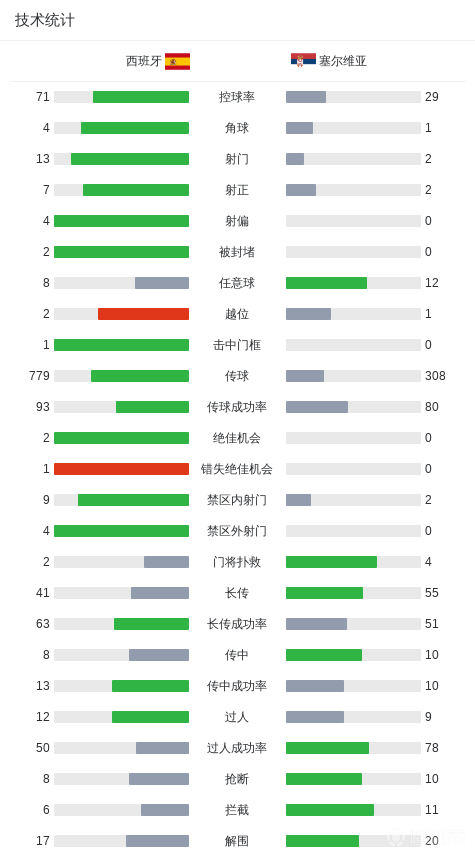 第16分钟,奥亚萨瓦尔左路插上抽射破门,西班牙1-0塞尔维亚
