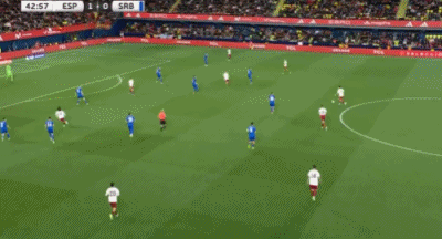 第43分钟,奥亚萨瓦尔禁区外远射破门,西班牙2-0塞尔维亚