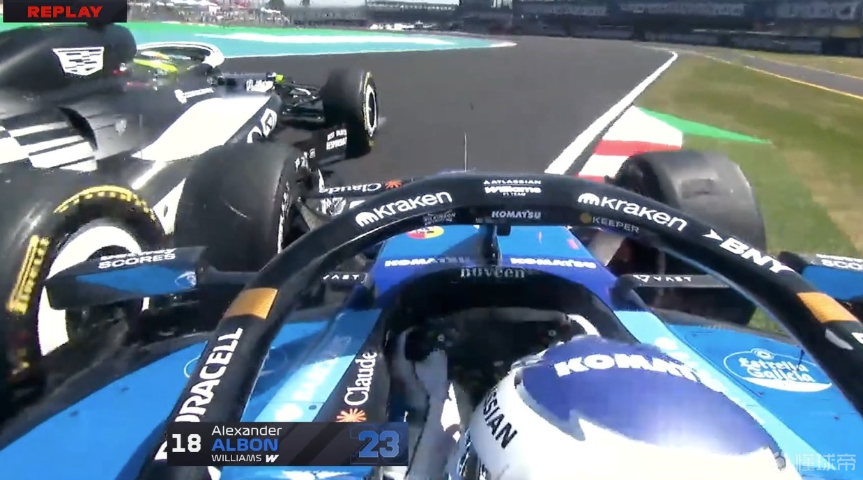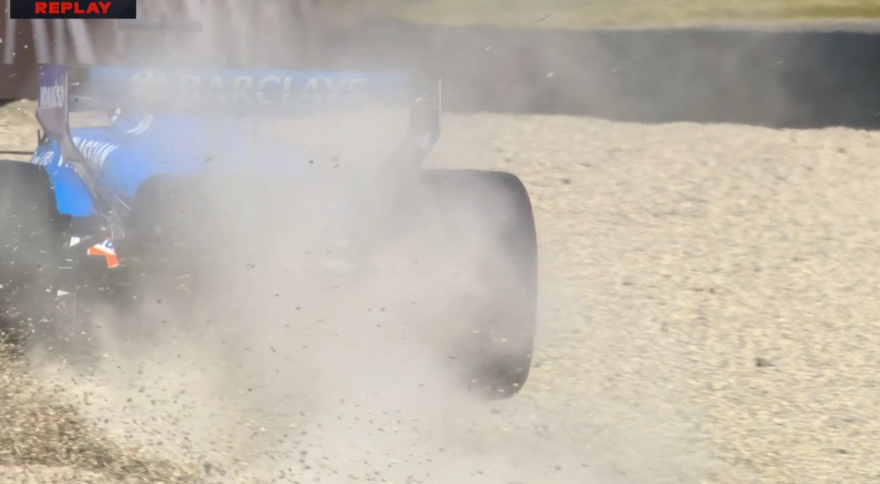 阿尔本在9号弯冲入了砂石区,后轮似乎与墙有碰撞。