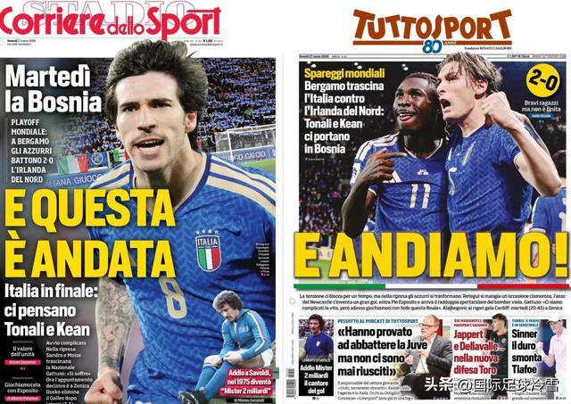 意大利2-0击败北爱尔兰,在世界杯预选赛欧洲区附加赛路径A的半决赛里取胜,将在决赛里对阵波黑。
