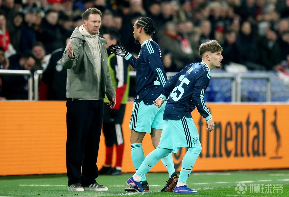 在与瑞士队的友谊赛中,18岁的拜仁小将伦纳特-卡尔上演德国国家队首秀。