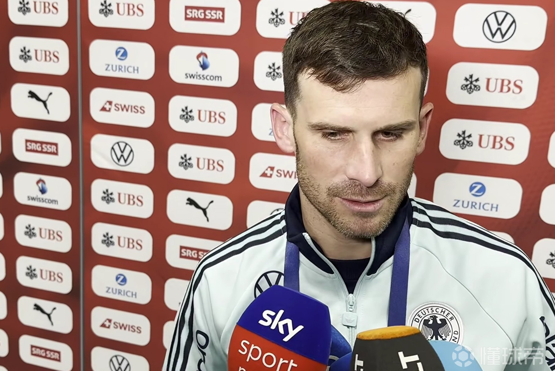在4-3战胜瑞士的赛后,德国队中场格罗斯在混采区接受了采访。