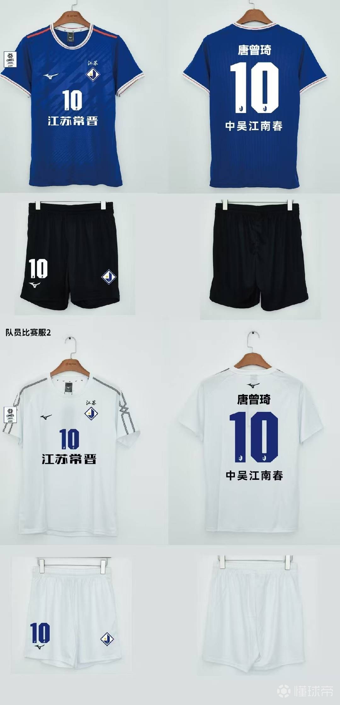 根据朱苍铄曝光的照片,江苏常晋新赛季主场球衣以蓝色为主色调,这也是“老江苏队”的传统主场球衣颜色。该球衣正面有暗纹设计,logo、号码等元素为白色;肩部、领口、袖口则有红色作为点缀;配套的球裤则为黑色。