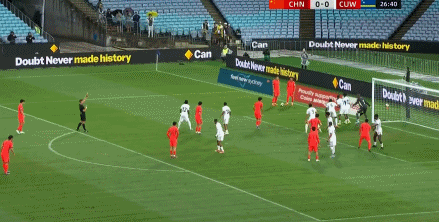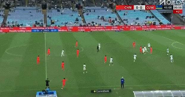 上半场伤停补时阶段,颜骏凌后场定位球开出,张玉宁头球摆渡,韦世豪不停球潇洒凌空抽射,国足1比0领先库拉索!
