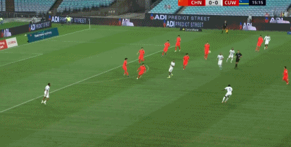 第10分钟,国足角球进攻未果,库拉索发动反击,王上源1防2在中圈位置完成关键拦截!
