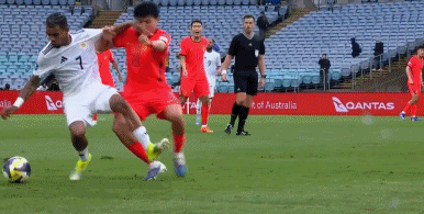 北京时间今天下午14:00,FIFA系列赛第一轮,中国男足vs库拉索,上半场王上源贡献关键拦截,补时阶段张玉宁助攻韦世豪破门,半场战罢,国足1-0领先库拉索。