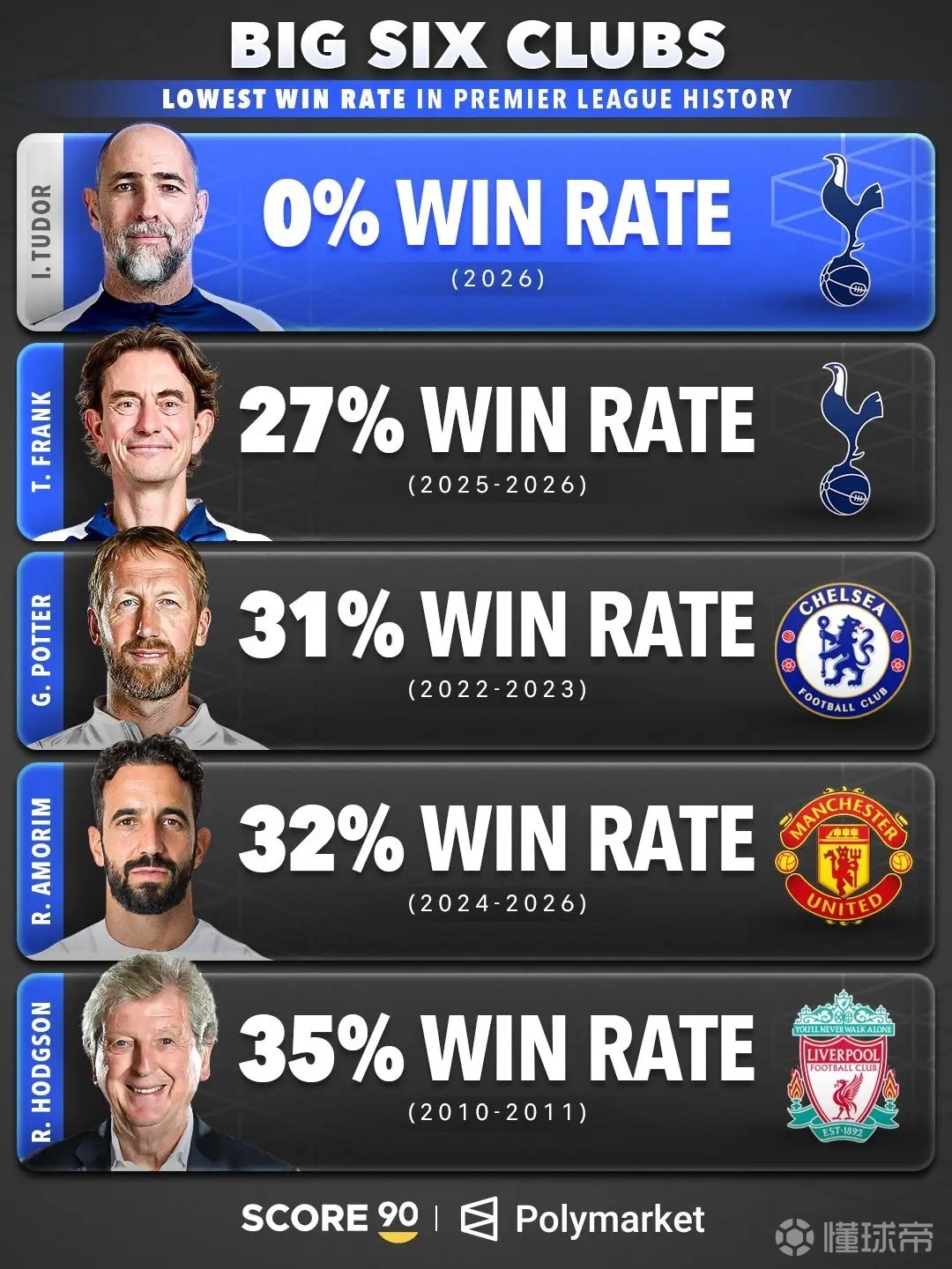 1、图多尔 热刺 2026 胜率0%