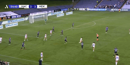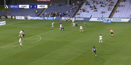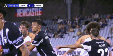 第45+5分钟,贝尔通切洛补射破门完成双响,纽卡斯尔喷气机2-2麦克阿瑟