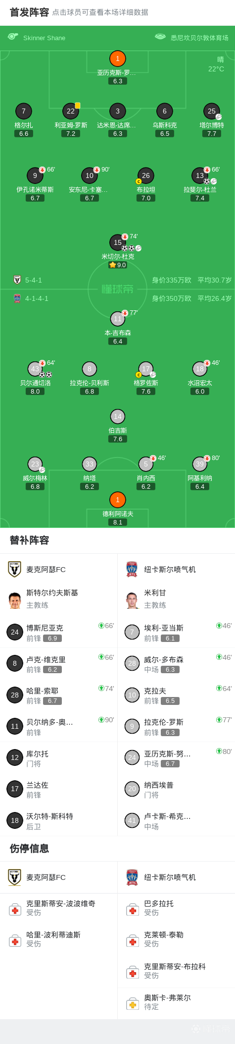 第10分钟,杜兰头球回做,杜克转身抽射破门,麦克阿瑟1-0