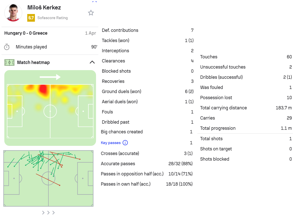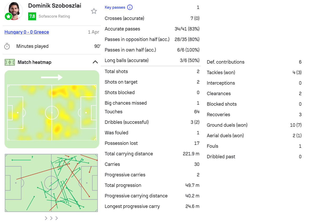 6.索博,匈牙利0-0希腊,首发打满全场。