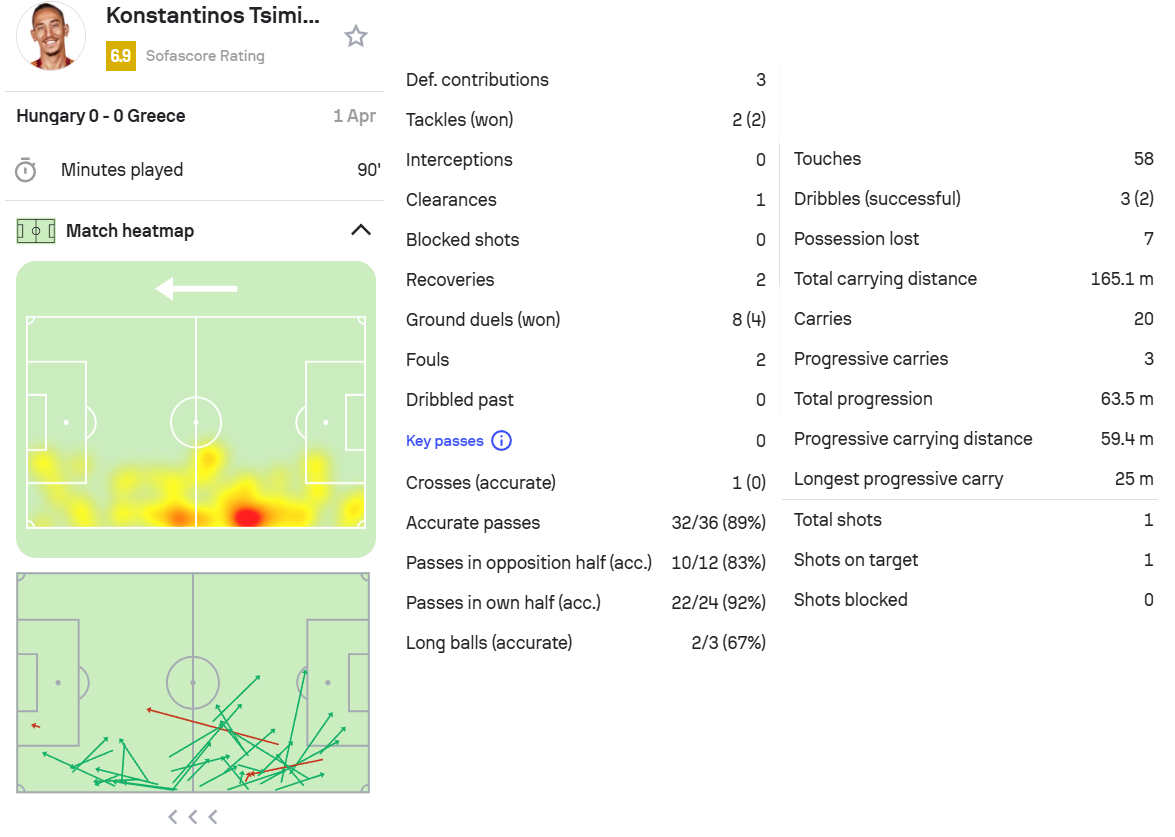 7.凯尔凯兹,匈牙利0-0希腊,首发打满全场。