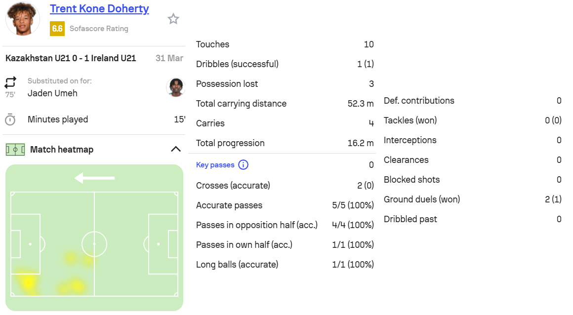 这是多赫蒂第6次为爱尔兰U21出场。
