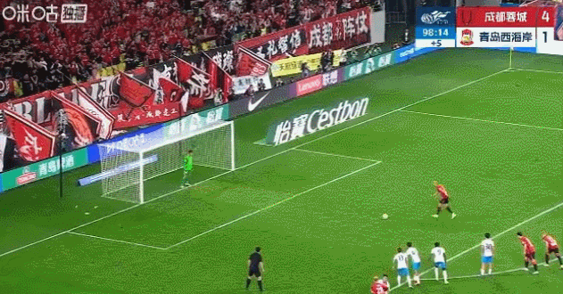 伤停补时第7分钟,青岛西海岸球员禁区内手球,成都蓉城获得点球,费利佩点球命中,生日夜上演帽子戏法!