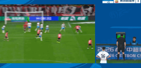 伤愈复出的费利佩留在替补席,王子铭首发出场。比赛的第7分钟,青岛西海岸后卫解围失误,无人盯防的韦林顿扫射破门,1比0!