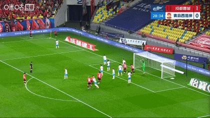第40分钟,罗慕洛远射被扑,索罗金补射破门,成都2-0领先