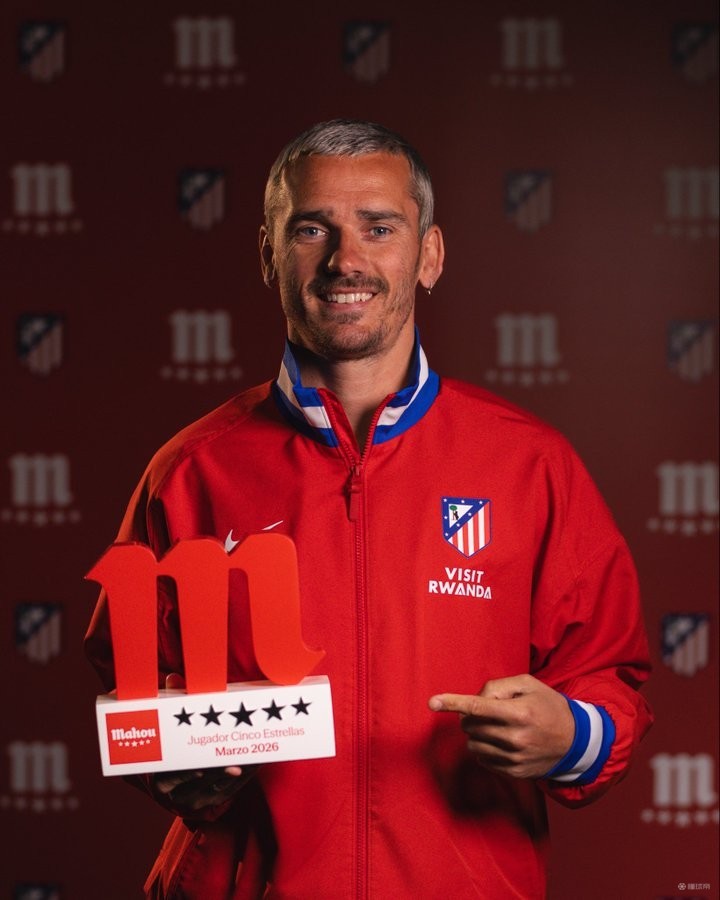 北京时间4月3日,马竞官方宣布,格列兹曼当选球队的3月最佳球员。