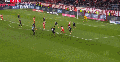 第45+2分钟,互相传射,卡尔助攻奥利塞推射破门,拜仁2-2扳平!