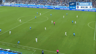 第14分钟,率先得分,韦斯利头球破门,新鹏城1-0三镇