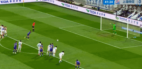 第39分钟,巴顿主罚的角球被申花后卫解围。随后,主裁判回看慢镜头之后改判点球,谢蒂内主罚点球破门。