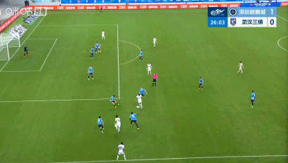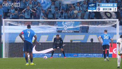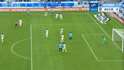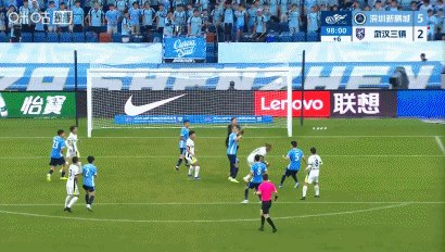第14分钟,率先得分,韦斯利头球破门,新鹏城1-0三镇