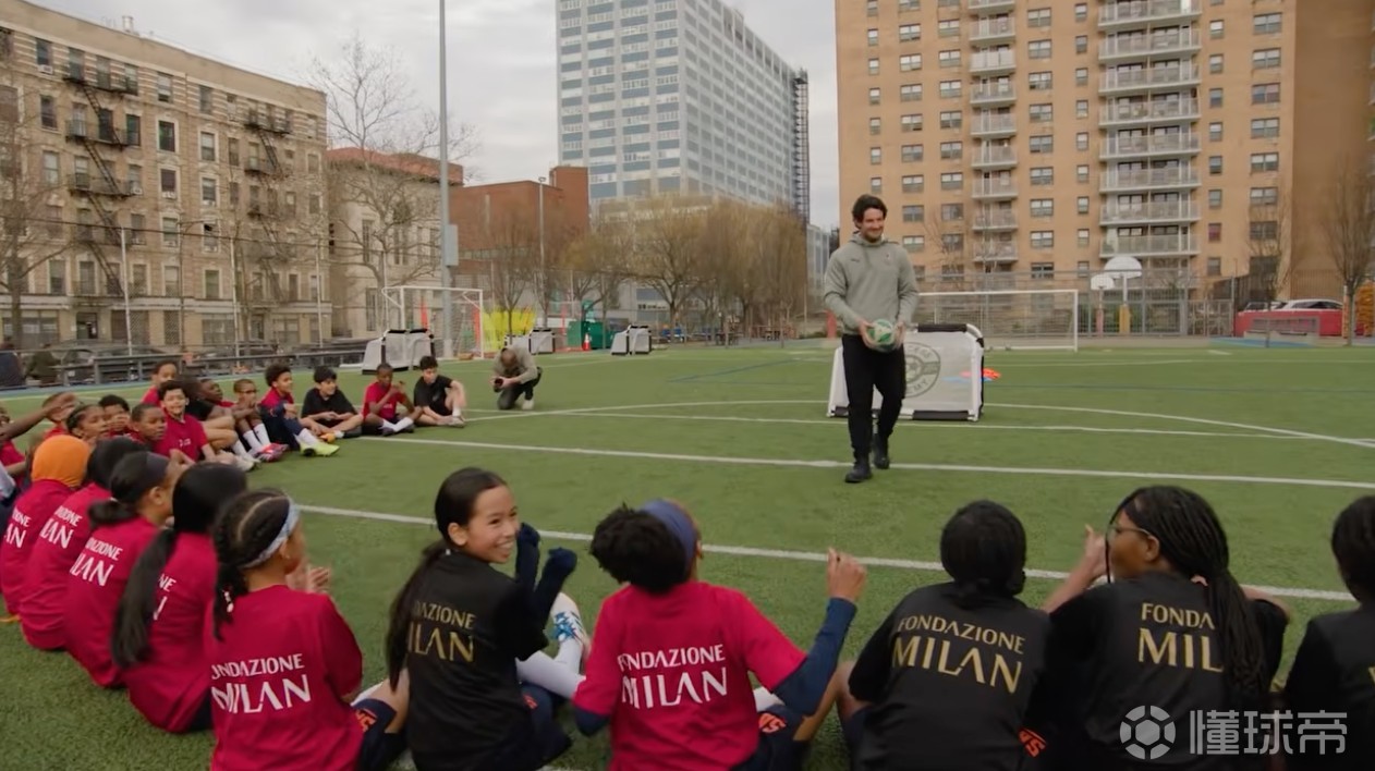 我能看出来,你真的太爱这项运动了。我们这儿正好有一件AC米兰球衣,后面那群孩子也都在踢球。我觉得可以把这件球衣送给其中一个孩子。