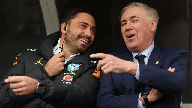 3位意大利主教练的教练组,总计还有14位意大利人。安切洛蒂的儿子达维德从2012年初就追随父亲,辗转大巴黎、皇马、拜仁、那不勒斯和埃弗顿。去年7月执教巴西豪门博塔弗戈,去年12月底离职。体能教练毛里、表现分析师弗尔科都与安切洛蒂合作超过13年,比赛分析师蒙塔纳罗达8年,安切洛蒂几乎将皇马教练组复制到巴西。8个月前,球探拉萨拉也加入巴西教练组。
