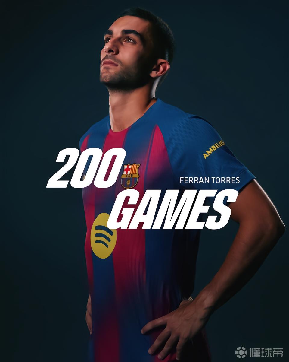 根据巴萨官方的统计,本场比赛是现年26岁的费兰-托雷斯自2022年1月加盟以来代表球队出战的第200场正式比赛,期间他为巴萨打进60球并送出21次助攻,帮助球队拿到了2次西甲、1次国王杯以及3次西班牙超级杯的冠军。