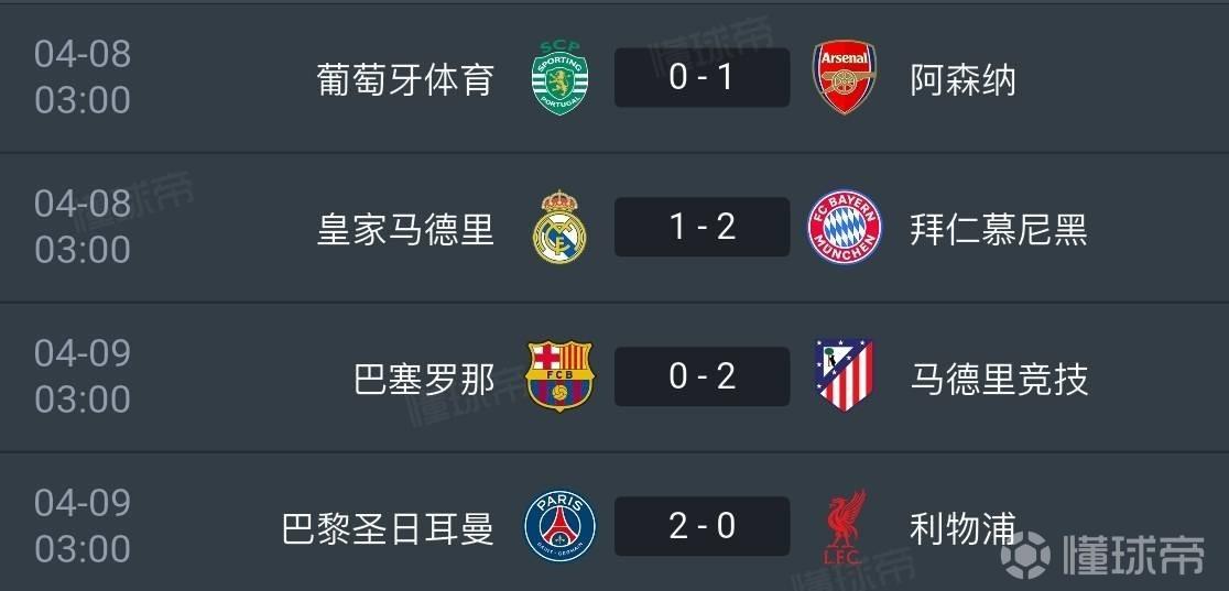 北京时间今天凌晨,欧冠1/4决赛首回合的较量全部落下帷幕。数据统计机构Polymarket则列出了欧冠八强各支球队赛前的晋级概率及最新的晋级概率对比,罗列如下。
