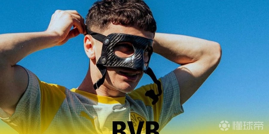 据报道,多特蒙德18岁中后卫卢卡-雷贾尼鼻梁骨折,他将暂时佩戴面部护具。