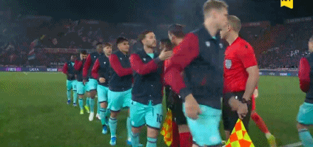 第1分钟,双方球员步入赛场,比赛即将打响